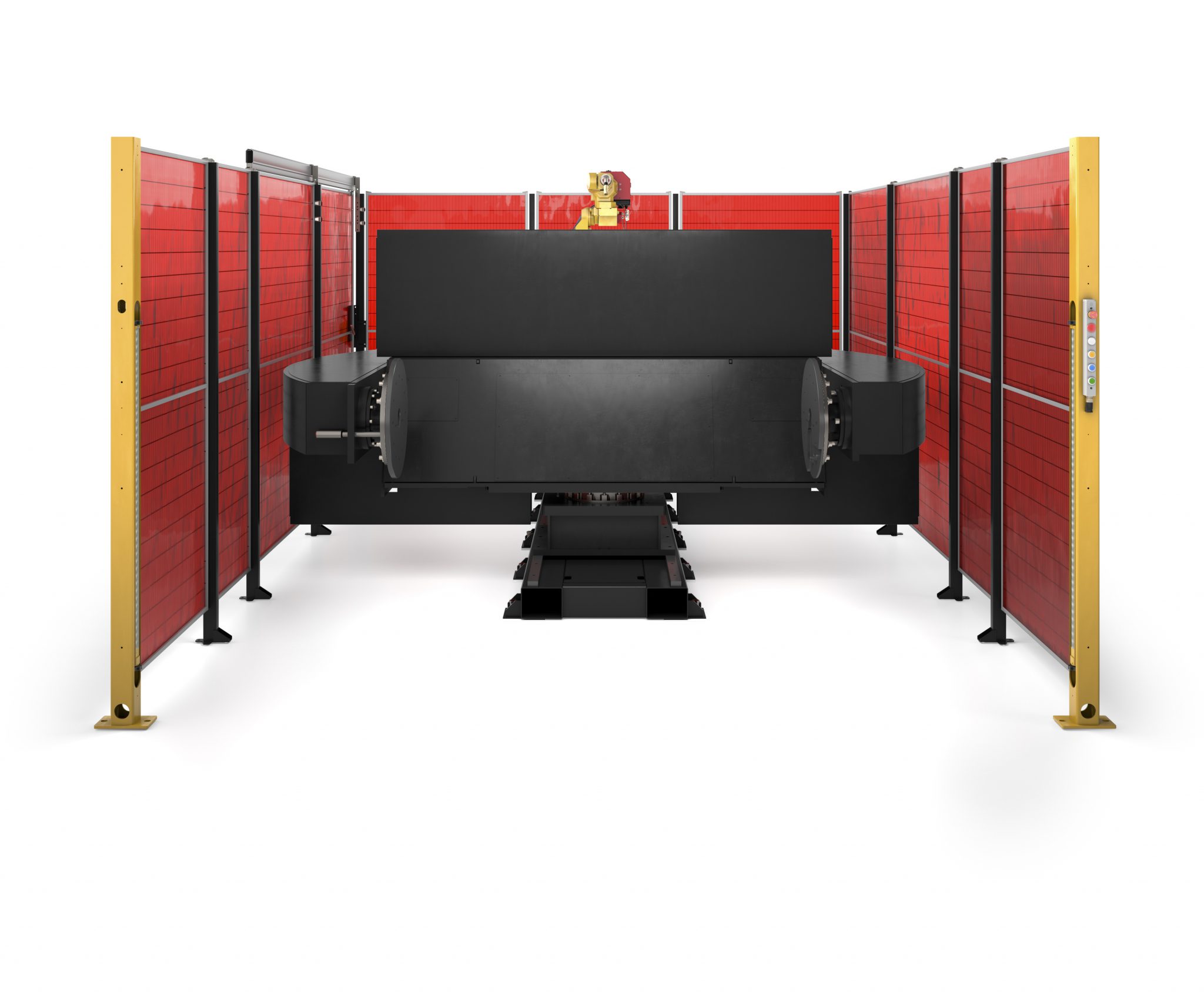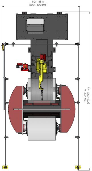 The pre-engineered Fab-Pak® XHS-RM is a rotating H-Frame, rear mounted, two zone arc welding robotic system. This arc welding solution is delivered ready-to-weld with a single load/unload point. The H-Frame positioner rotates 180 degrees. Each zone contains a headstock for easy reorientation of parts and is a great solution for small to medium sized parts.