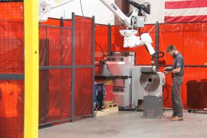 We have a full floor of amazing robot cells. We’re focused on manufacturing the best robot systems available. The vast majority of what we produce is robotic welding systems, but you’ll often find cutting, preheat, material handling, and grinding robotic systems on our floor too.